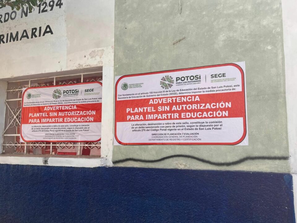 La Secretaría de Educación de Gobierno del Estado (SEGE) realizó una investigación administrativa que resultó en la colocación de sellos de advertencia en el Colegio Militarizado “Héroes de Chapultepec” en Matehuala, por ofrecer servicios educativos sin reconocimiento ni autorización estatal.
