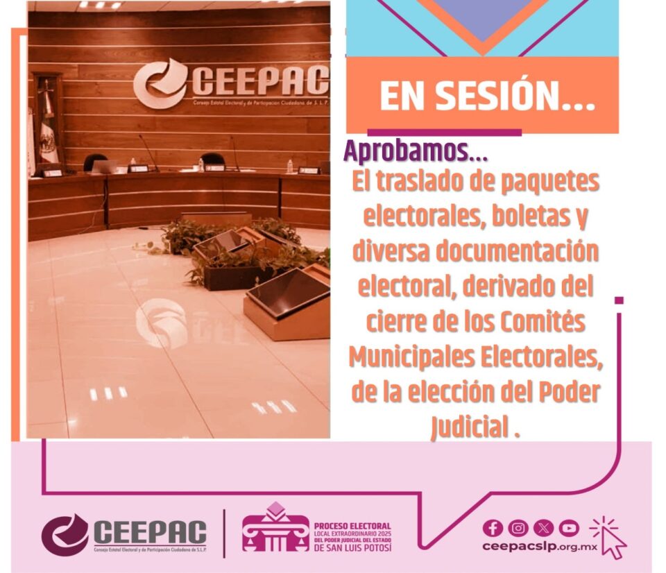 El Consejo General del Consejo Estatal Electoral y de Participación Ciudadana (CEEPAC), aprobó el traslado de los paquetes electorales, boletas y documentación electoral provenientes de 57 Comités Municipales Electorales hacia la bodega electoral del CEEPAC, habilitada especialmente para su resguardo.