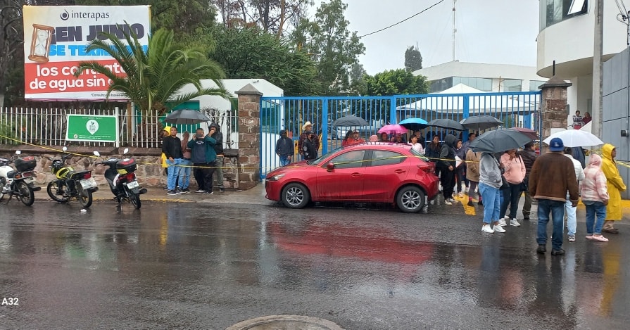 Habitantes de diversas colonias de Soledad de Graciano Sánchez se manifestaron esta mañana frente a la planta “Los Filtros” del organismo operador Interapas para exigir el restablecimiento inmediato del servicio de agua potable, luego de afirmar que llevan más de dos semanas sin suministro. La protesta se llevó a cabo pese a las lluvias registradas este viernes en la zona metropolitana.