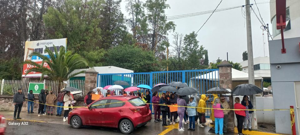 Habitantes de diversas colonias de Soledad de Graciano Sánchez se manifestaron esta mañana frente a la planta “Los Filtros” del organismo operador Interapas para exigir el restablecimiento inmediato del servicio de agua potable, luego de afirmar que llevan más de dos semanas sin suministro. La protesta se llevó a cabo pese a las lluvias registradas este viernes en la zona metropolitana.