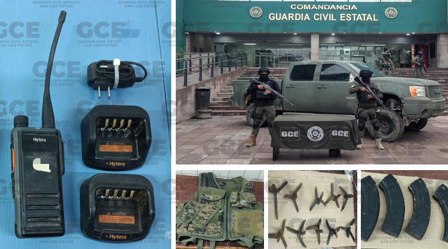 En el Operativo de seguridad, desarrollados mediante el dispositivo “Altiplano Seguro”, elementos de la Guardia Civil Estatal (GCE) aseguraron diversos objetos constitutivos de delito, en la comunidad de Santa Matilde. El primer aseguramiento fue de una camioneta GMC tipo Pick Up, modelo 2010, color verde, que posiblemente forma parte del parque vehicular vinculado a la comisión de hechos ilícitos.