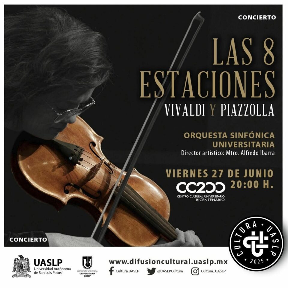 La Orquesta Sinfónica Universitaria, bajo la dirección artística del Maestro Alfredo Ibarra y con la participación especial del solista Josué Arana, presentan el concierto las 8 estaciones: Vivaldi & Piazzolla