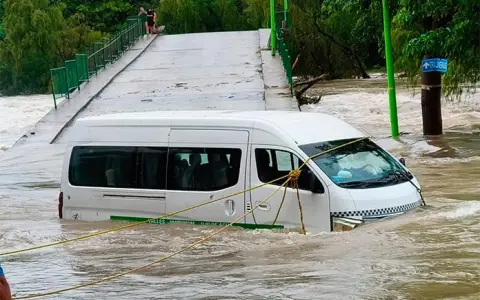 A pesar de que el nivel del agua ya era elevado y el cauce mostraba fuerte corriente en el acceso al parque, el conductor continuó su camino, hasta que la unidad fue arrastrada por la fuerza del río.