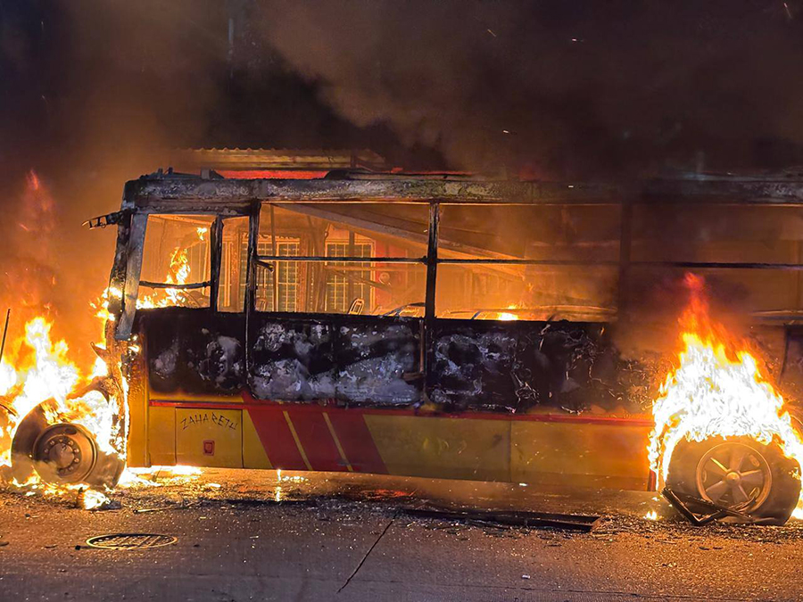 Un autobús del transporte público, con los cuerpos de cinco personas en el interior, fue incendiado por grupos criminales en la avenida Ruiz Cortines, cerca de la colonia La Laja, en la parte alta de Acapulco, Guerrero. Antier alrededor de las 22:40 horas, corporaciones de seguridad recibieron el reporte de la quema de la unidad que cubre la ruta Hospitales-Vacacional, de la línea amarilla.
