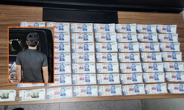 Un menor de edad identificado como Rogelio, de 17 años, fue detenido por elementos de la Policía de Monterrey tras ser sorprendido con 24 mil 400 pesos en billetes falsos.