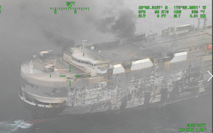 El buque transportaba un total de 3 mil 048 vehículos, de los cuales 70 eran totalmente eléctricos y 681 híbridos.