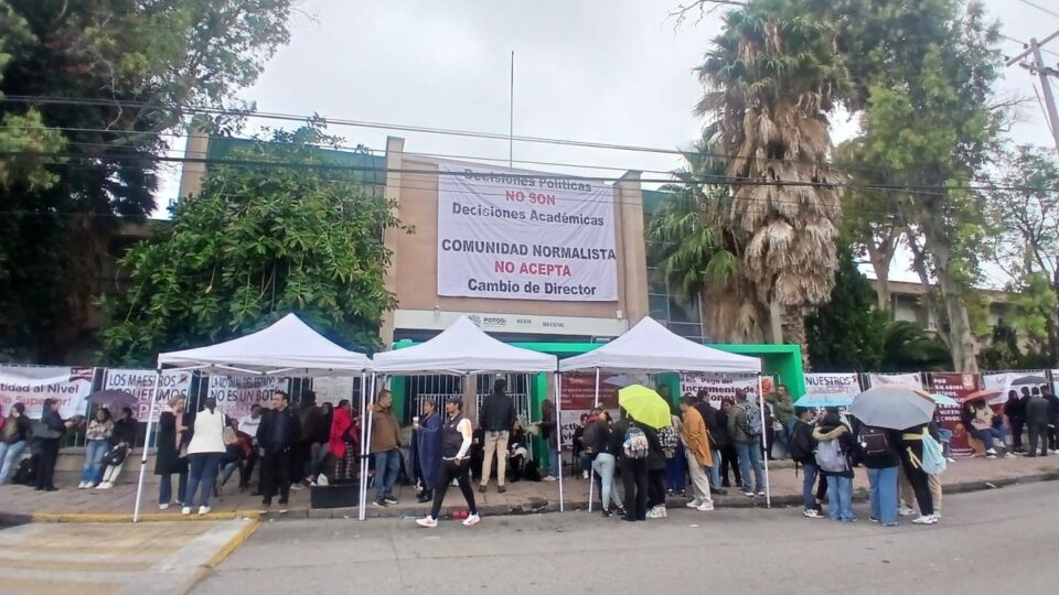 Maestros de la Centenaria y Benemérita Normal del Estado y agremiados a la Sección 52 del SNTE se mantienen en plantón permanente hasta que sea reinstalando como director el maestro Francisco Hernández Ortiz y se les de respuesta a todas las peticiones que han hecho por maestros a quienes les faltan las prestaciones.