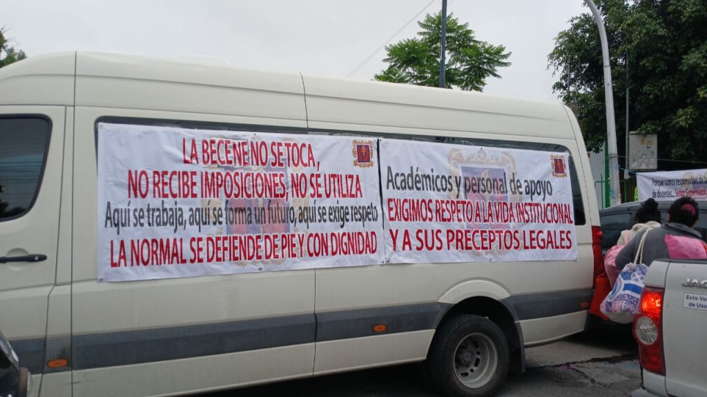 Además, de mantener tomadas las instalaciones de la Normal del Estado con candado, tiene bloqueada la vialidad de Nicolas Zapata, afectando a la zona escolar y sobre todo a la Clínica del IMSS que se encuentra enfrente de la institución educativa.