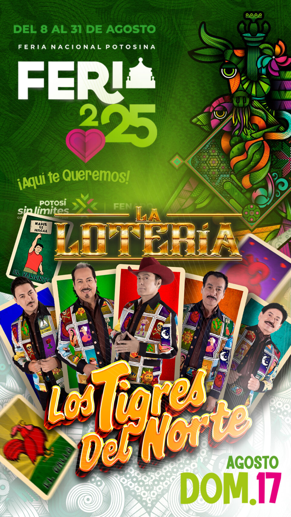 El grupo más influyente de la música norteña, Tigres del Norte, confirmó su presentación en el escenario principal de la Feria Nacional Potosina (Fenapo) 2025 el próximo sábado 17 de agosto como parte de la cartelera estelar de conciertos gratuitos en El Foro para disfrutar sin límites.