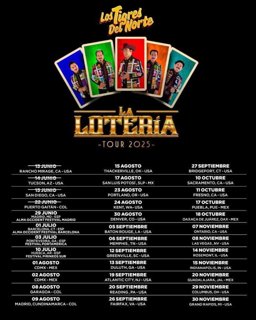Con una trayectoria de más de cinco décadas, Tigres del Norte ha marcado generaciones con temas como La Puerta Negra, Jefe de Jefes, Ni Parientes Somos, Golpes en el Corazón y La Reina del Sur convirtiéndose en íconos del regional mexicano dentro y fuera del país.