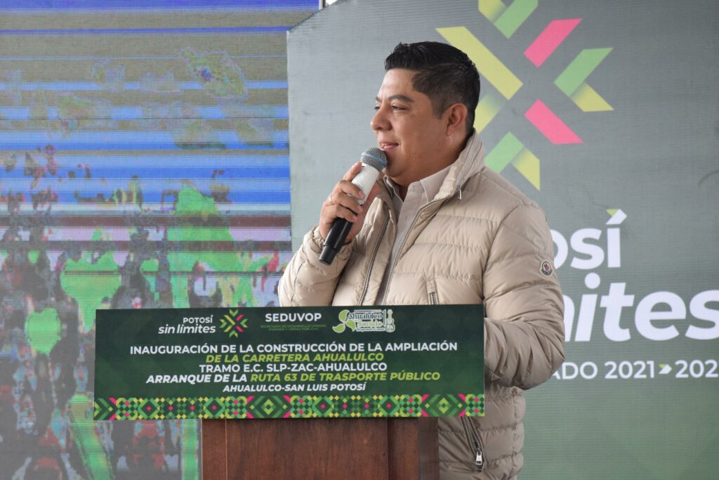 Con la presencia de más de tres mil personas de los municipios de Ahualulco, Villa de Arriaga, Santo domingo, Charcas, Venado, Moctezuma, así como del Secretario General de Gobierno J. Guadalupe Torres, el Jefe de Gobierno Estatal dijo que hoy San Luis Potosí vive una transformación en infraestructura y recordó que esta supercarretera sustituyó al antiguo y peligroso camino por una moderna carretera que brinda seguridad en los recorridos y dignidad para las familias.