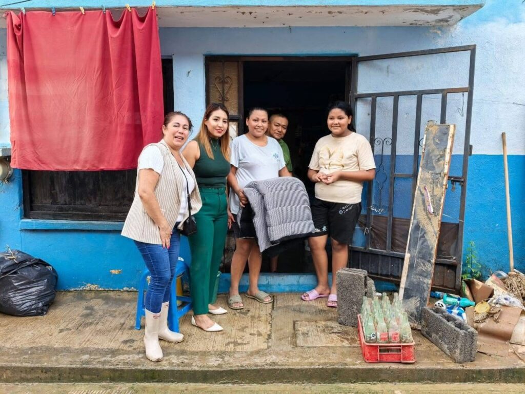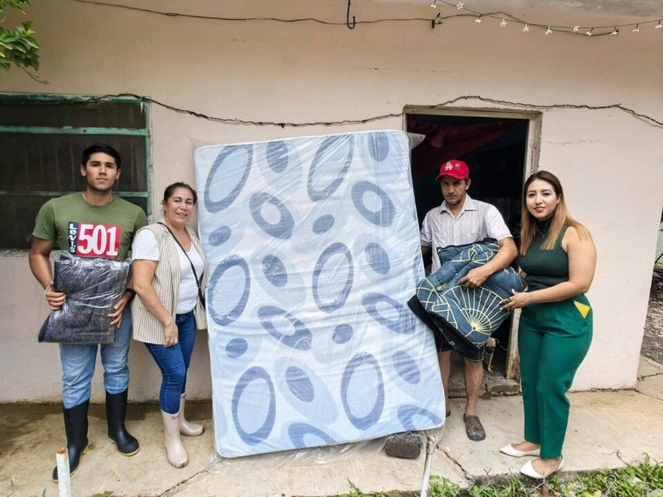 Durante esta semana, se le ha visto muy activa en los municipios afectados como fue Axtla de Terrazas, donde anda repartiendo colchones y colchonetas a las familias damnificadas, quienes perdieron sus pertenencias.