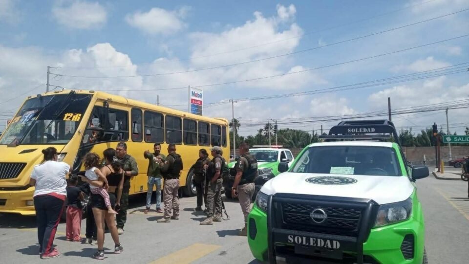 La tarde de este domingo, una confrontación vial escaló hasta convertirse en un acto de violencia contra un camión urbano en la avenida Valentín Amador, esquina con San Pedro, en el municipio de Soledad de Graciano Sánchez.