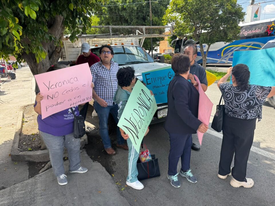 José Alejandro Zavala, Ramón Reynoso y José Miguel Delgado Torres, trabajadores de la legisladora en el Congreso del Estado, llegaron a boicotear el evento panista con pancartas con consignas como “Eres la priístas más panista”, “Espuria”, “Enrique Galindo manda en el PAN” y “Fuera Vero” en contra de Rodríguez y del alcalde Enrique Galindo.
