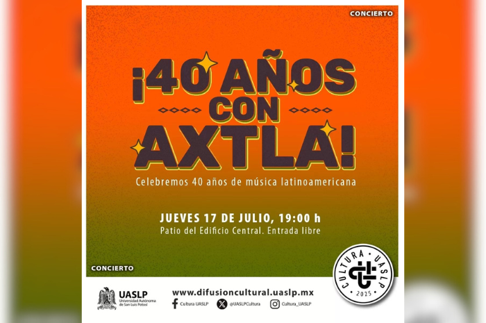 Este jueves 17 de julio a las 19:00 horas, el histórico patio del Edificio Central de la Universidad Autónoma de San Luis Potosí (UASLP) se llenará de música, historia y celebración con el concierto conmemorativo por el 40 aniversario del Grupo Axtla, una de las agrupaciones artísticas más emblemáticas de la casa de estudios.