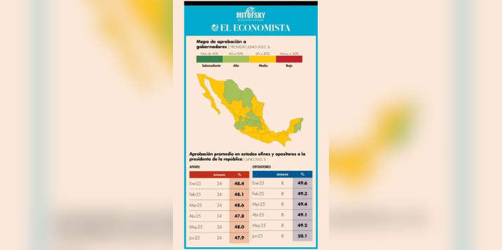 Lo anterior, según el más reciente Ranking Mitofsky, difundido por el diario El Economista, que asigna al titular del Ejecutivo potosino una calificación del 53.7 por ciento, consolidando su posición como uno de los mandatarios estatales con mayor aprobación a nivel nacional. Los dos primeros lugares fueron ocupados por las gobernadoras de Quintana Roo y Ciudad de México, Mar Lezama y Clara Brugada, respectivamente.