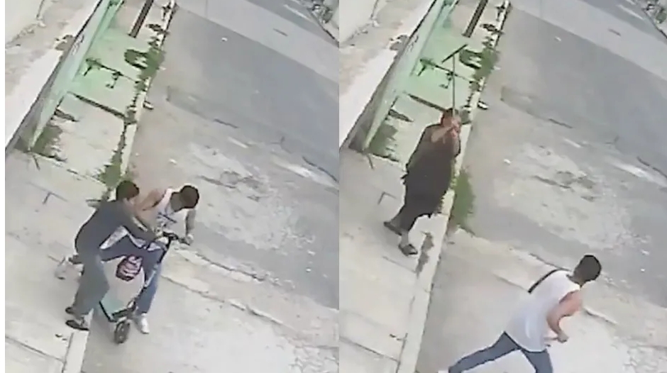 Una adulta mayor evitó el robo de un patín a un niño en el municipio de Valle de Chalco, Estado de México, luego de que un hombre intentara despojarlo. Así quedó captado el hecho.