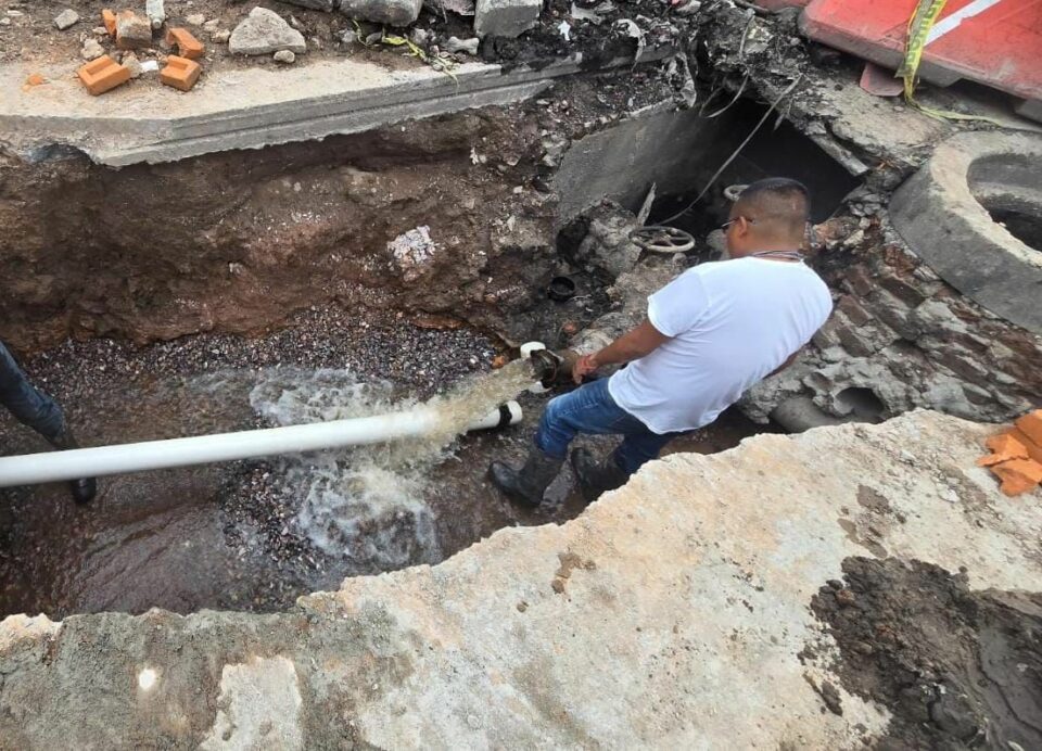 Como parte de la obra, se realiza la conexión de un nuevo tubo de 4 pulgadas en la esquina de Pedro Montoya y Eje Vial, así como la reconexión de tomas domiciliarias, lo que permitirá optimizar el suministro en viviendas y comercios cercanos al Mercado República, una zona de alta actividad comercial en el primer cuadro de la ciudad.