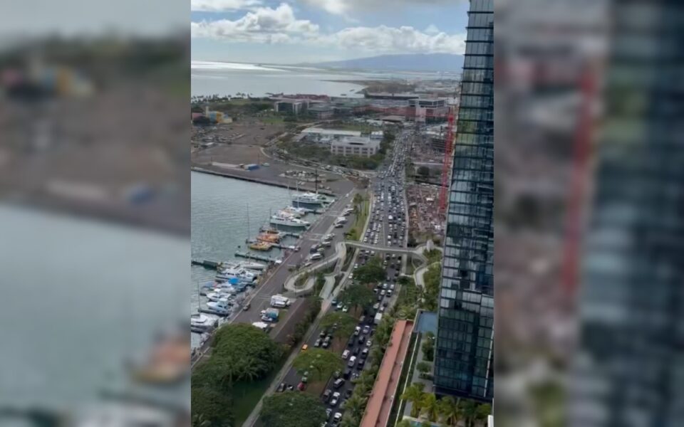 En redes sociales se viralizó un video que documenta un embotellamiento vial en una de las avenidas principales de Honolulu, Hawái, luego de que la población fuera alertada por el posible arribo de un tsunami.