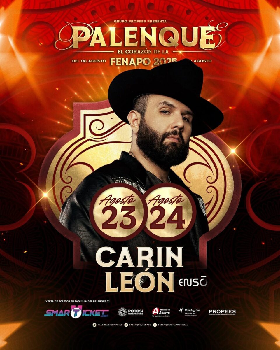 El próximo 23 y 24 de agosto, el escenario del Palenque de la Feria Nacional Potosina (FENAPO) 2025 recibirá a uno de los máximos exponentes de la música regional mexicana Carín León.