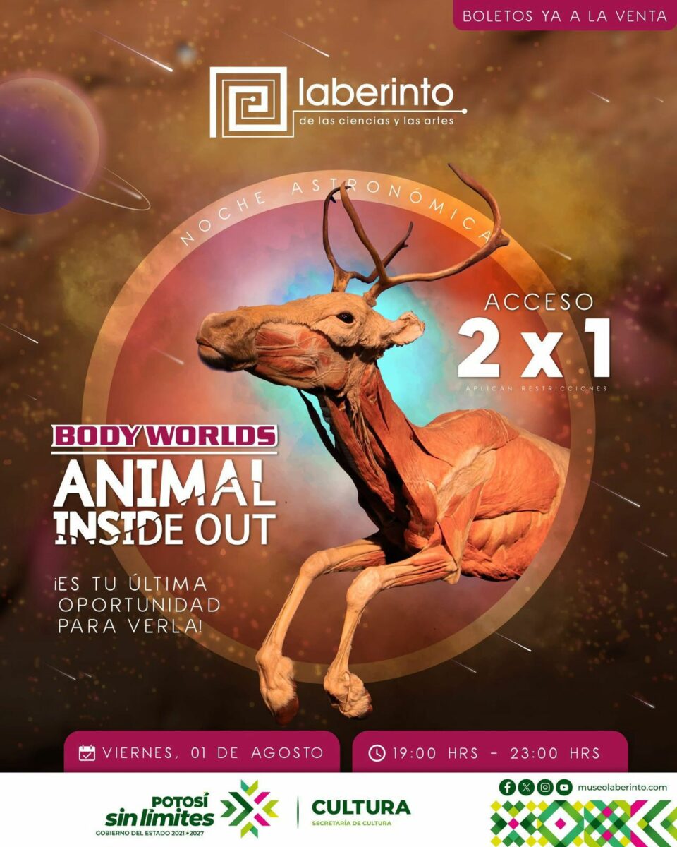 Uno de los principales atractivos será la promoción 2×1 en la exposición “Body Worlds: Animal Inside Out”, una muestra mundialmente reconocida que permite explorar la anatomía animal de una forma impactante y educativa. Esta será la última oportunidad para visitarla antes de que cierre sus puertas.