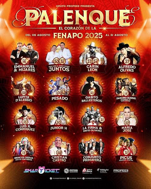 La Feria Nacional Potosina (FENAPO) en San Luis Potosí, SLP, tendrá un palenque con artistas como Alfredo Olivas y Carín León, además de otros como Lupita D’Alessio, Palomazo Norteño, Gabito Ballesteros, y más.