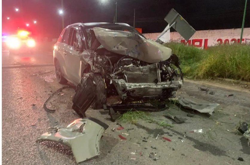 Los hechos, la noche de ayer, donde, después de la colisión, la camioneta Suzuki se sube al camellón central y dañó la señalética.
