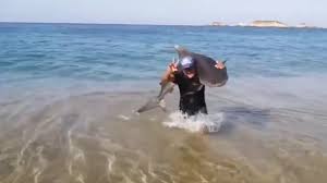 Hombre captura a tiburón tigre con sus manos