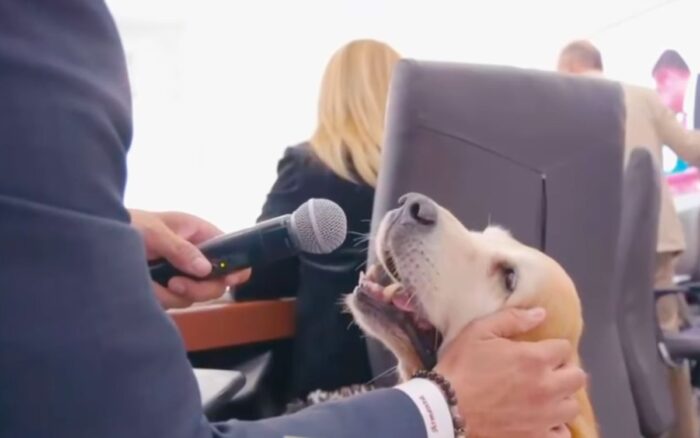 En la rueda de prensa y rodeado de su gabinete estatal, el mandatario morenista agradeció la presencia del can. “Estamos tan emocionados que Tomy nos vino a visitar, ¿verdad Tomy?”, expresó, mientras sostenía un micrófono frente a su mascota.