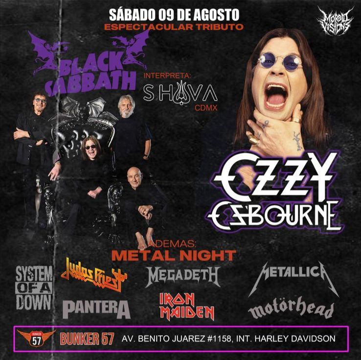 La cita es en Búnker 57 con la banda Shiva Rock, directamente desde la Ciudad de México, será la banda encargada de revivir la magia y la oscuridad de Ozzy y Black Sabbath en un show inolvidable. Los Boletos ya están preventas disponibles en Mórbida Shop.