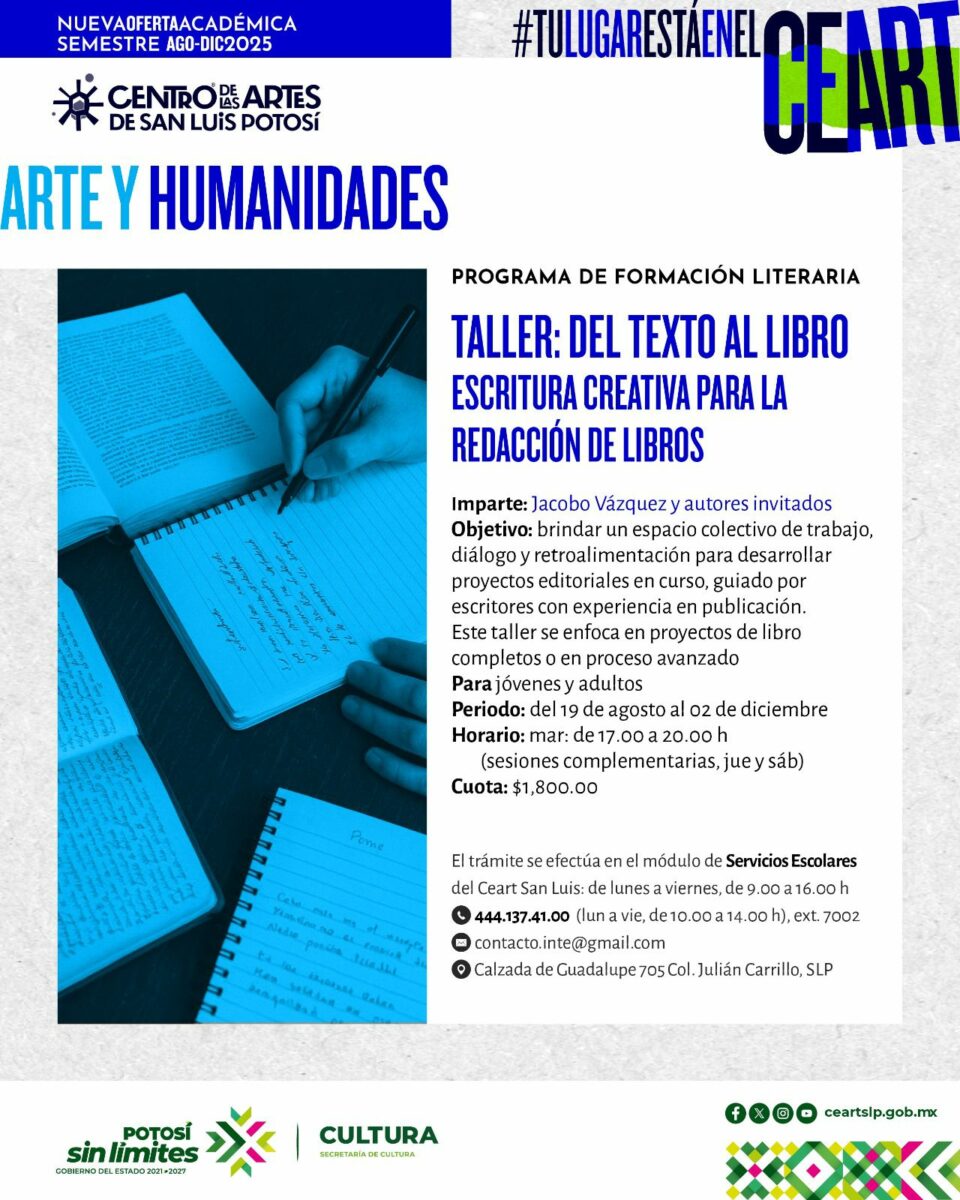 El Centro de las Artes de San Luis Potosí (Ceart) anunció una amplia oferta de cursos y talleres para los meses de agosto a diciembre de 2025, dirigidos a personas de todas las edades. Este programa abarca las áreas de arte, literatura, pensamiento crítico y lenguas originarias, fomentando el diálogo, la creatividad y la diversidad cultural.