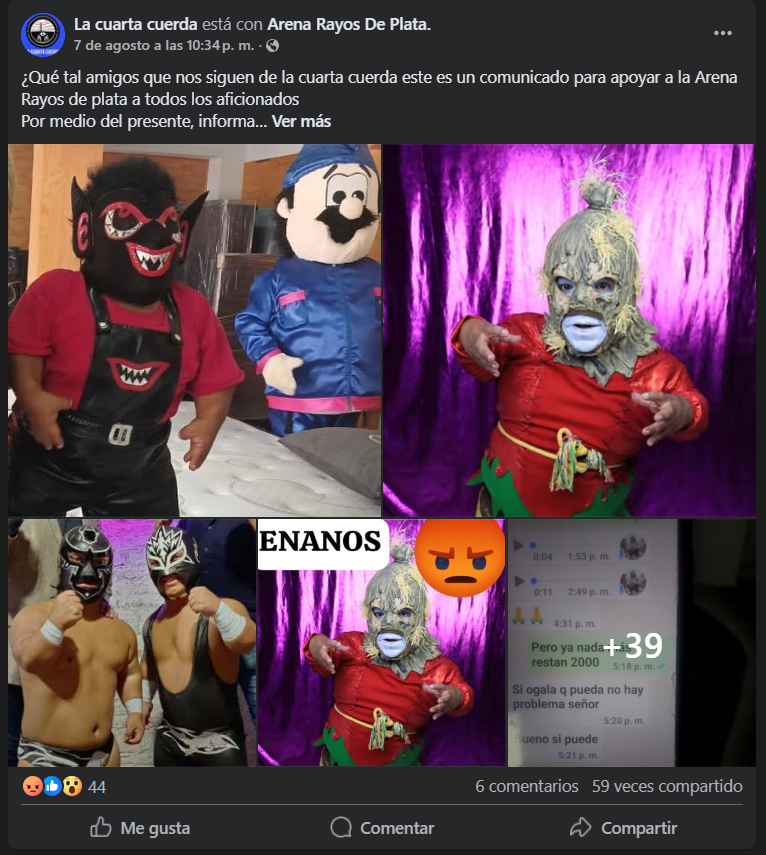 Los luchadores de la categoría Enanitos: Micro Texano (Martin Marín Telles); Micro Nova (Eder Michell Telles Hernández); Micro Duende (Javier Romo Amador) y Micro Espantapájaros, (Javier Romo Amador) defraudaron al promotor potosino Juan Padrón Luna “Rayo de Plata” y al público que había asistido a presenciar su actuación.