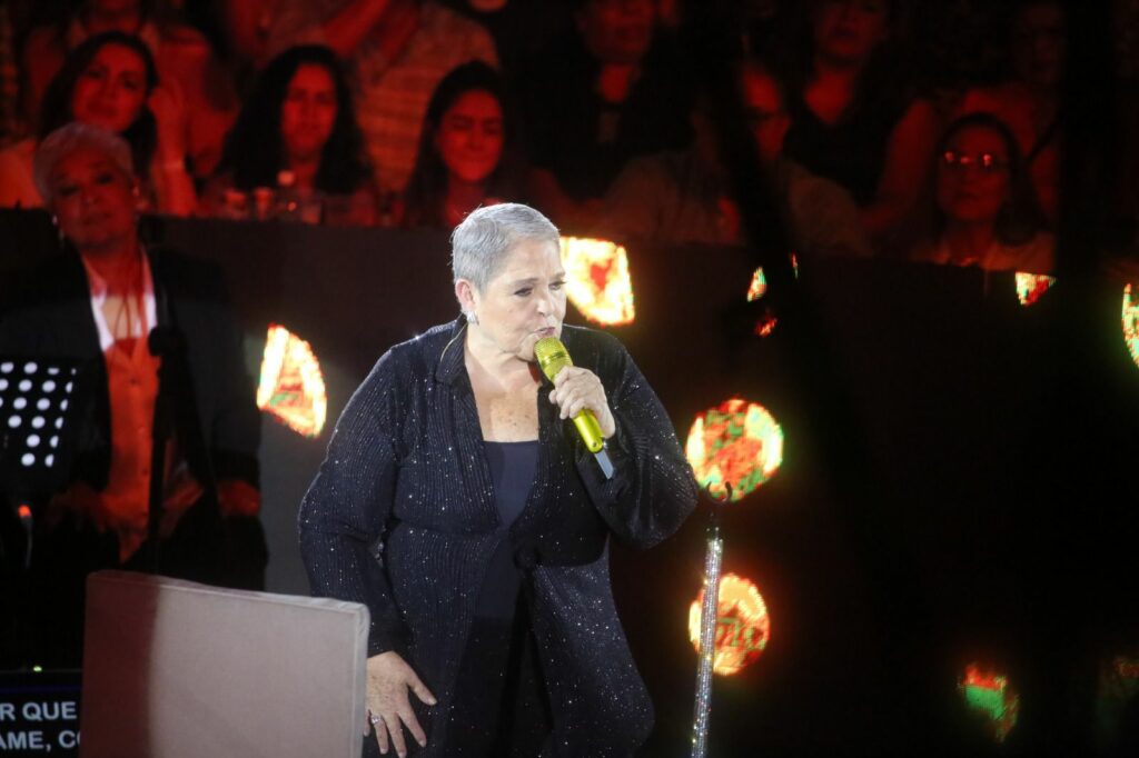 En su entrada triunfal al escenario, “La Leona Dormida” hizo cantar y vibrar a todos con sus temas más emblemáticos. En dos ocasiones, el público se puso de pie para ovacionarla, reconociendo su talento y trayectoria.