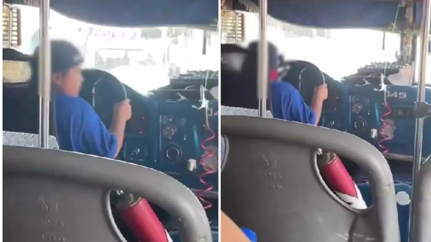 El menor, que a simple vista tendría entre 11 y 14 años, aparece haciendo un notable esfuerzo para asomarse por encima del tablero y mantener el control del vehículo. Su baja estatura obliga a que se estire para alcanzar los pedales y mirar hacia el camino.