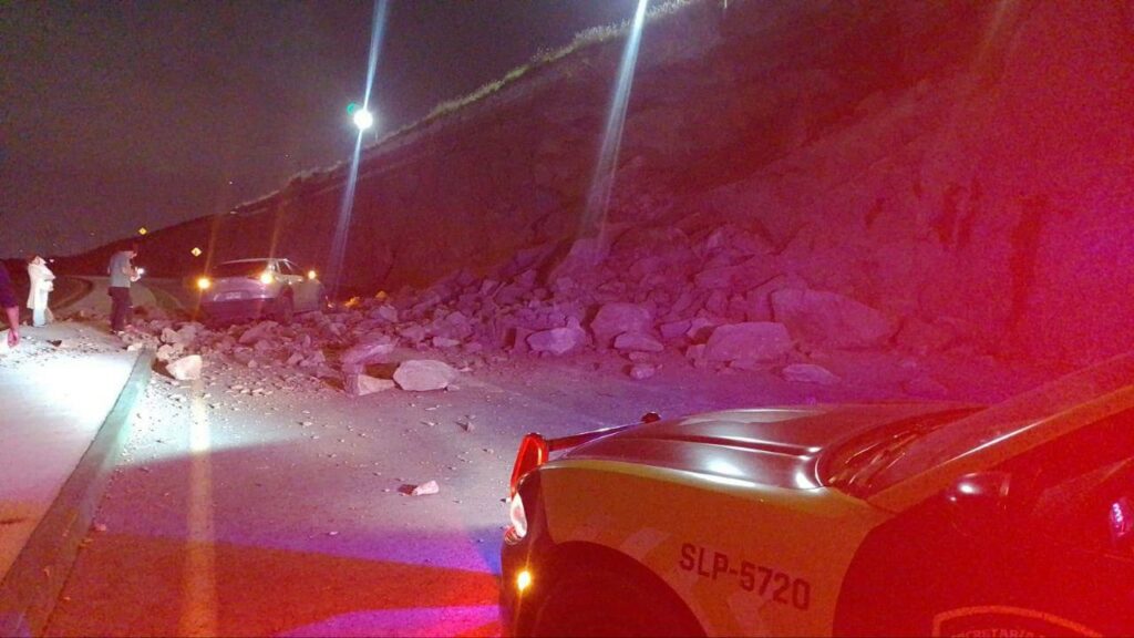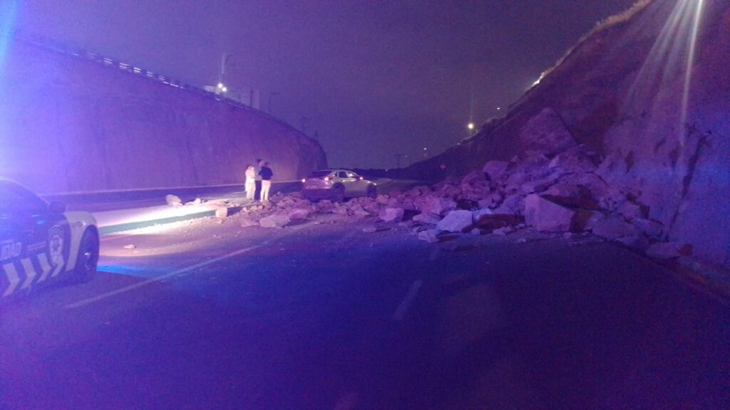 La Dirección de Protección Civil Municipal acudió como primer respondiente al reporte de deslizamiento de rocas ocurrido durante la madrugada de este martes en Prolongación Calzada de Guadalupe, entre Circuito Potosí y avenida Campo Azul, en la zona sur de la ciudad.
