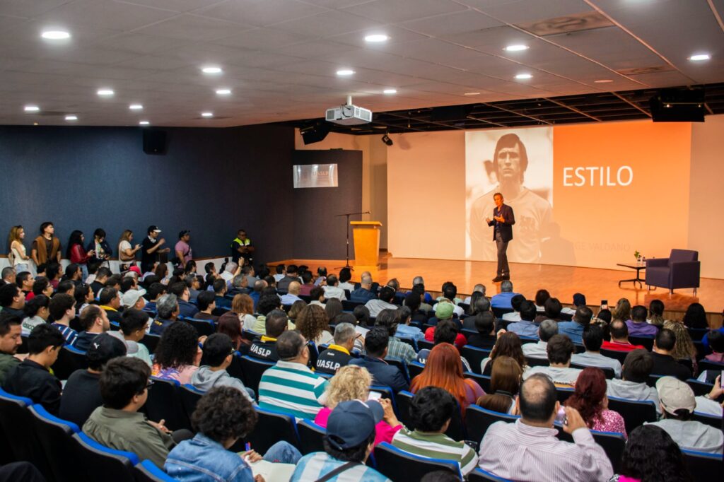 El fútbol es el fenómeno cultural más grande que existe y el primer tema de conversación en todo el mundo; sirve para romper el hielo en cualquier ámbito, por lo que es uno de los mejores vehículos de comunicación, afirmó Jorge Valdano Castellanos, exfutbolista argentino y campeón del mundo en la copa México 1986, durante la conferencia “Los 11 poderes del líder”, impartida en el marco del 40 aniversario de la Facultad de Ciencias de la Comunicación de la UASLP.