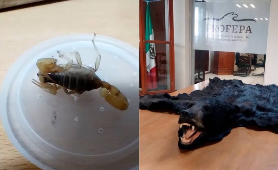 Autoridades de la Procuraduría Federal de Protección al Ambiente (Profepa) aseguraron un escorpión de arena (Hadrurus arizonensis) y la piel completa de un oso negro (Ursus americanus) que fueron detectados en dos envíos de paquetería en el estado de San Luis Potosí.