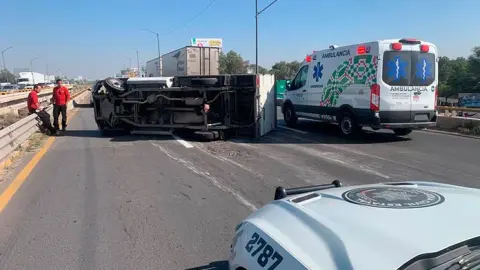 Al circular por la carretera a México, una rauda camioneta sufrió aparatosa volcadura a la altura del puente del Eje 128, no hubo personas lesionadas aunque los daños materiales fueron considerables.
