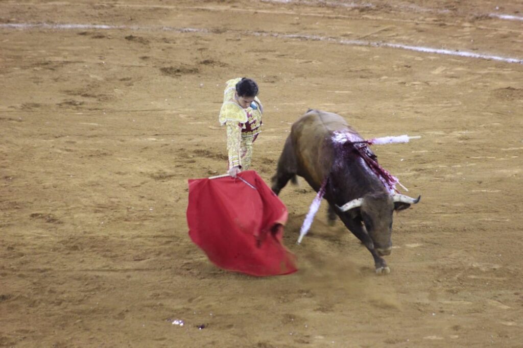 Regalo un cárdeno claro que acudió por ambos lados pero pinchó para dejar estocada, el diestro escucho un aviso pero salió al tercio con fuerza.