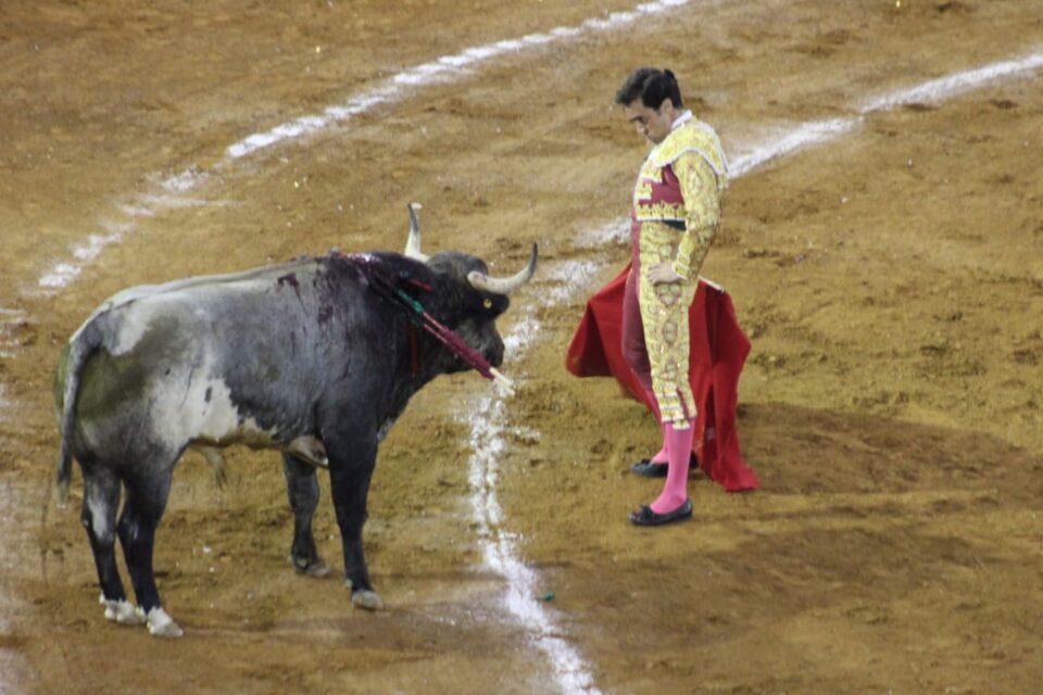 Regalo un cárdeno claro que acudió por ambos lados pero pinchó para dejar estocada, el diestro escucho un aviso pero salió al tercio con fuerza.