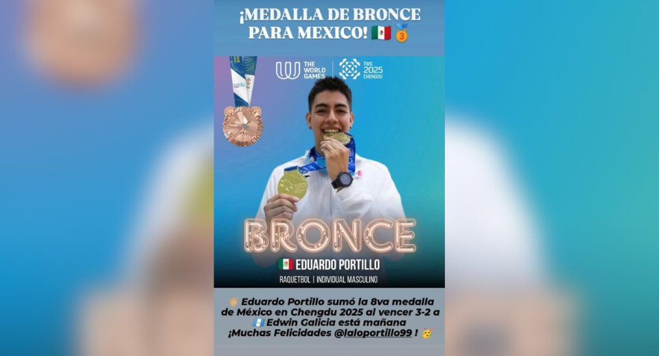 El racquetbolista potosino Eduardo Portillo coronó su actuación en los World Games en Chengdu, China, conquistando la medalla de bronce.