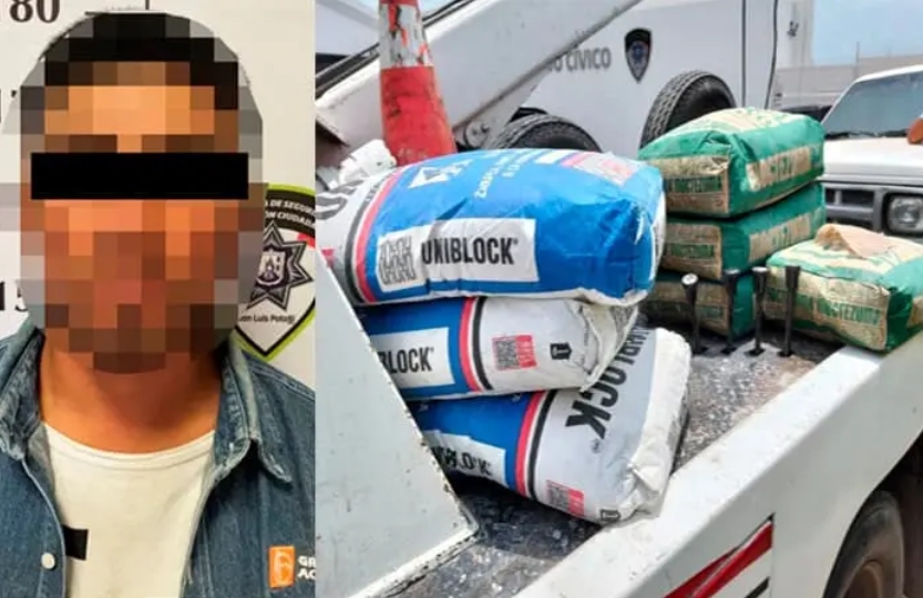 Inmediatamente los oficiales municipales ubicaron la camioneta en el lugar, misma que era tripulada por Jesús Alejandro “N” de 28 años, de oficio albañil, a quien se le indicó del probable delito cometido, al ser encontrado en posesión de 4 bultos de cemento gris de 25 kilos y 3 bultos de estuco de 40 kilos.