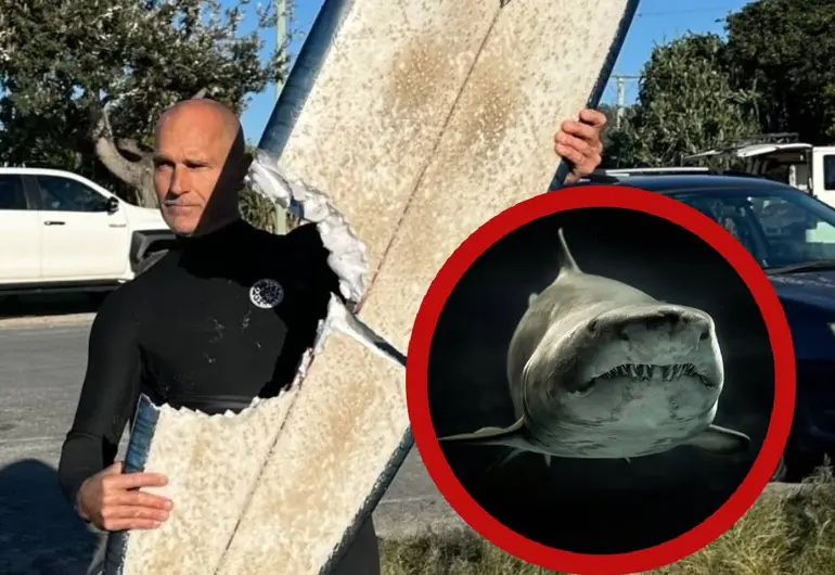 El surfista Brad Ross vivió un momento estremecedor el lunes 18 de agosto de 2025, cuando un gran tiburón blanco mordió con furia su tabla de surf en la playa de Cabarita, en Nueva Gales del Sur, Australia, separándola en dos justo debajo de él.