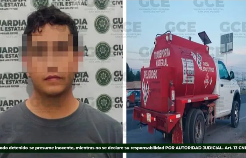 Durante los recorridos de seguridad que son realizados por nuestros agentes de la Guardia Civil Estatal, adscritos a la División Caminos, se efectuó la detención de Alberto “N” de 29 años, quien se desplazaba a bordo de un vehículo marca Dodge, tipo RAM, modelo 2014, en el que trasladaba 3 mil litros de diésel, mismo del que no pudo comprobar su procedencia legal.
