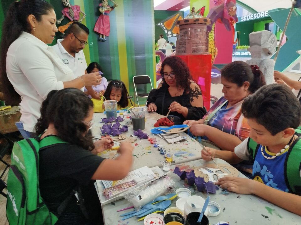Esta semana y por segunda ocasión, la Casa de Cultura del Barrio de San Miguelito participó en las actividades del stand de la Secretaría de Cultura (SECULT) en la Feria Nacional Potosina (FENAPO) con la elaboración de manualidades y dinámicas lúdicas para niñas y niños, entre ellas la elaboración de máscaras y figuras de cartonería que cada participante decoró a su gusto, así como juegos de mesa como la lotería de Xantolo y la lotería de cultura potosina.