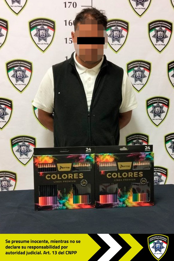 De acuerdo al reporte de los hechos, personal de seguridad del comercio solicitó el apoyo policial al detectar a un hombre que sustrajo de la sección de papelería, cajas de colores Premium, con un valor de 558 pesos, los cuales no pagó al salir del comercio.