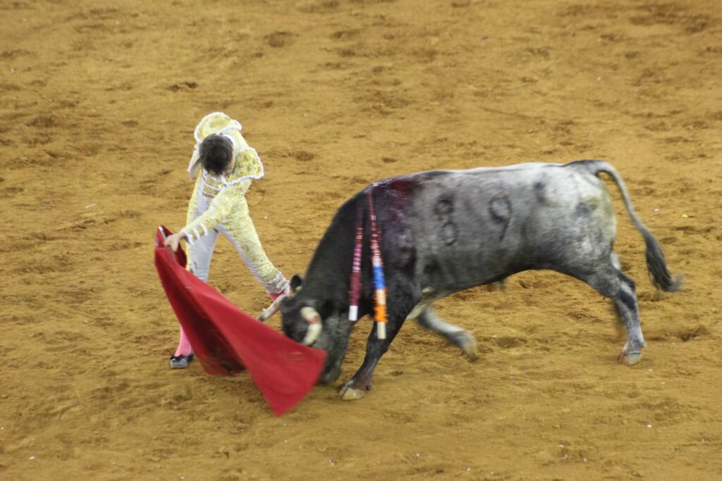 Faena buscando la embestida de su primer toro; escuchó palmas y uno que otro villamelón pedía oreja.