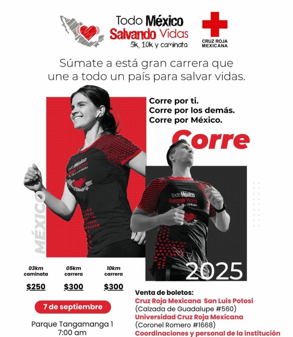 El domingo 7 de septiembre en San Luis Potosí y en cada sede de la Delegación de la Cruz Roja Mexicana en el país se correrá la justa atlética “Todo México Salvando Vidas”.