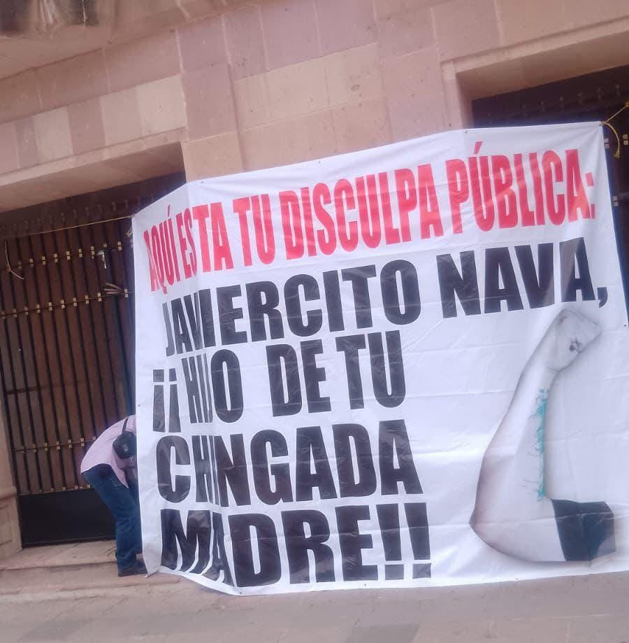 En la fachada del Congreso del Estado, en edificio que se encuentra frente a Plaza de Armas, se coloco una gran manta en contra del ex presidente municipal, Xavier Nava Palacios, el cual logro que se le ordena al Poder Legislativo que, revoque la inhabilitación impuesta por la anterior Legislatura.