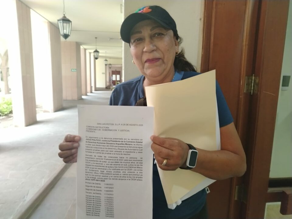 La víctima María de Jesús “MaryChuy” Almendárez Prieto presentó ante el Congreso del Estado más pruebas en contra de la presidenta de la Comisión Estatal de Derechos Humanos (CEDH), Giovanna Itzel Argüelles Moreno, para evitar que se deseche el juicio político que promovió en su contra.